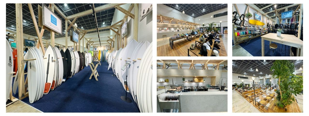 ムラサキスポーツ宮崎青島店のSURFBOARD STATION 九州では、店舗に「珈琲 紫Aoshima」とリラックスできるスペースが併設しているので、