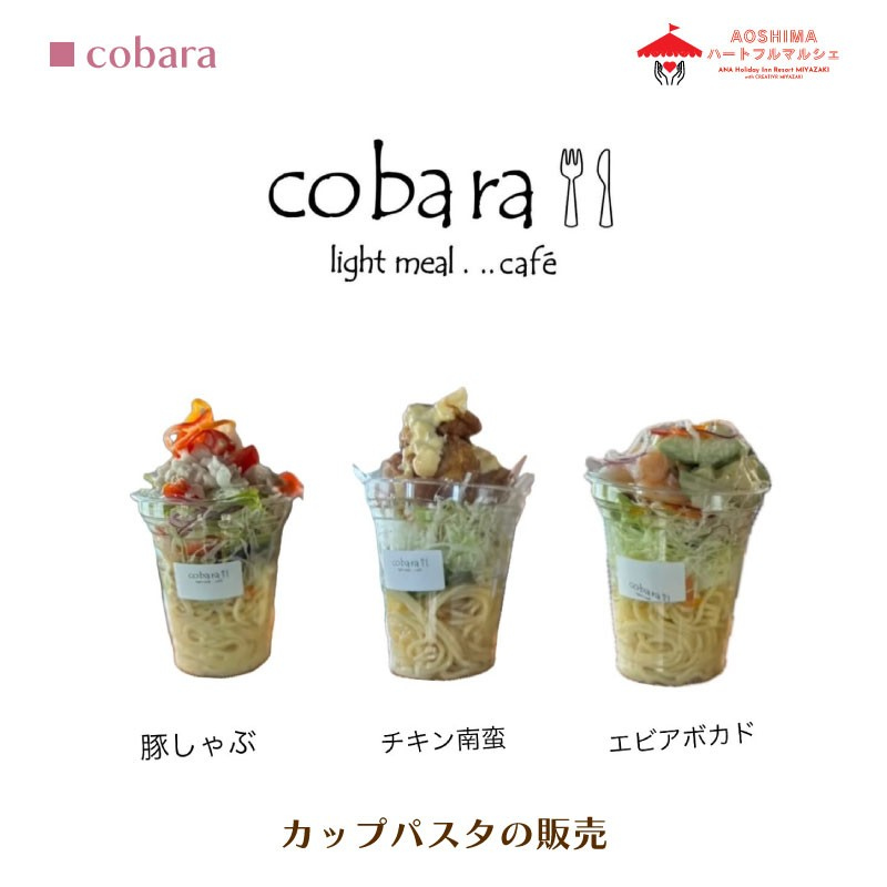■cobara お野菜たっぷりのチキン南蛮、エビアボカド、豚シャブのワンハンドシェイクパスタです。