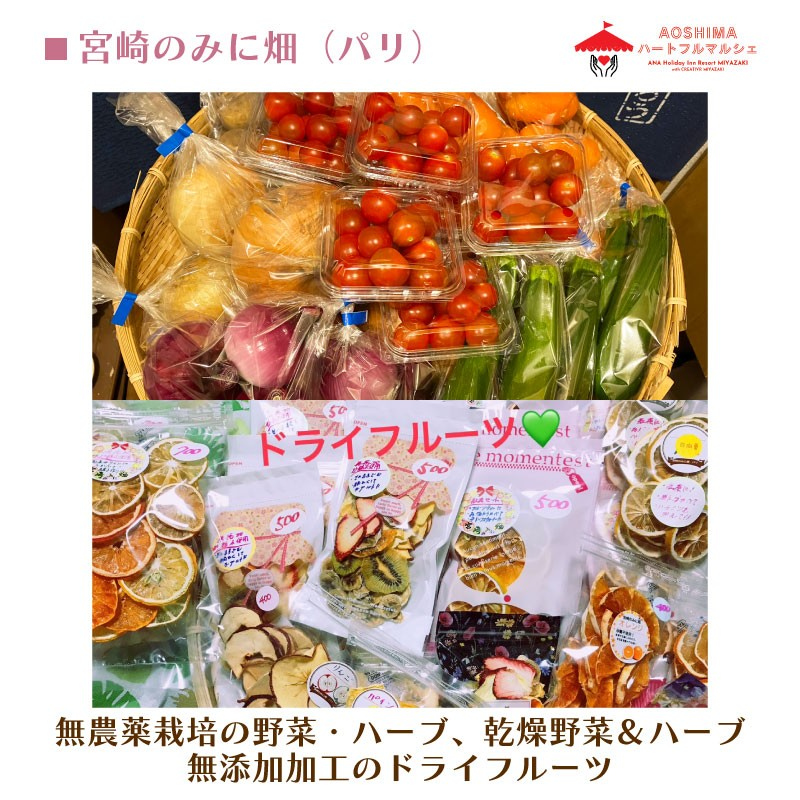 ■宮崎のみに畑(パリ) 栽培、加工においてミネラル水(ポタポタ水)を使用しています。