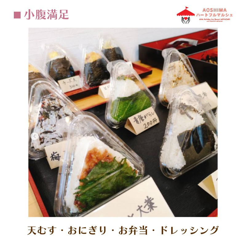 ■小腹満足 カツオと鶏の出汁飯に天ぷら包んだ大きな天むすに手軽なおにぎり数種類をまごころこめて握りました!ランチにぴったりなおにぎり弁当もご用意しております。