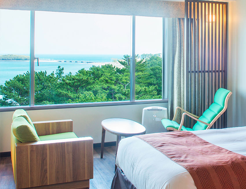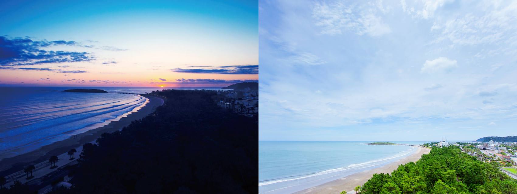 青島とビーチと杉林の美しいコントラストの風景がお楽しみいただけます。