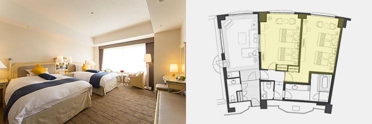 プライベート性も確保したコネクティングタイプのツインルーム。
