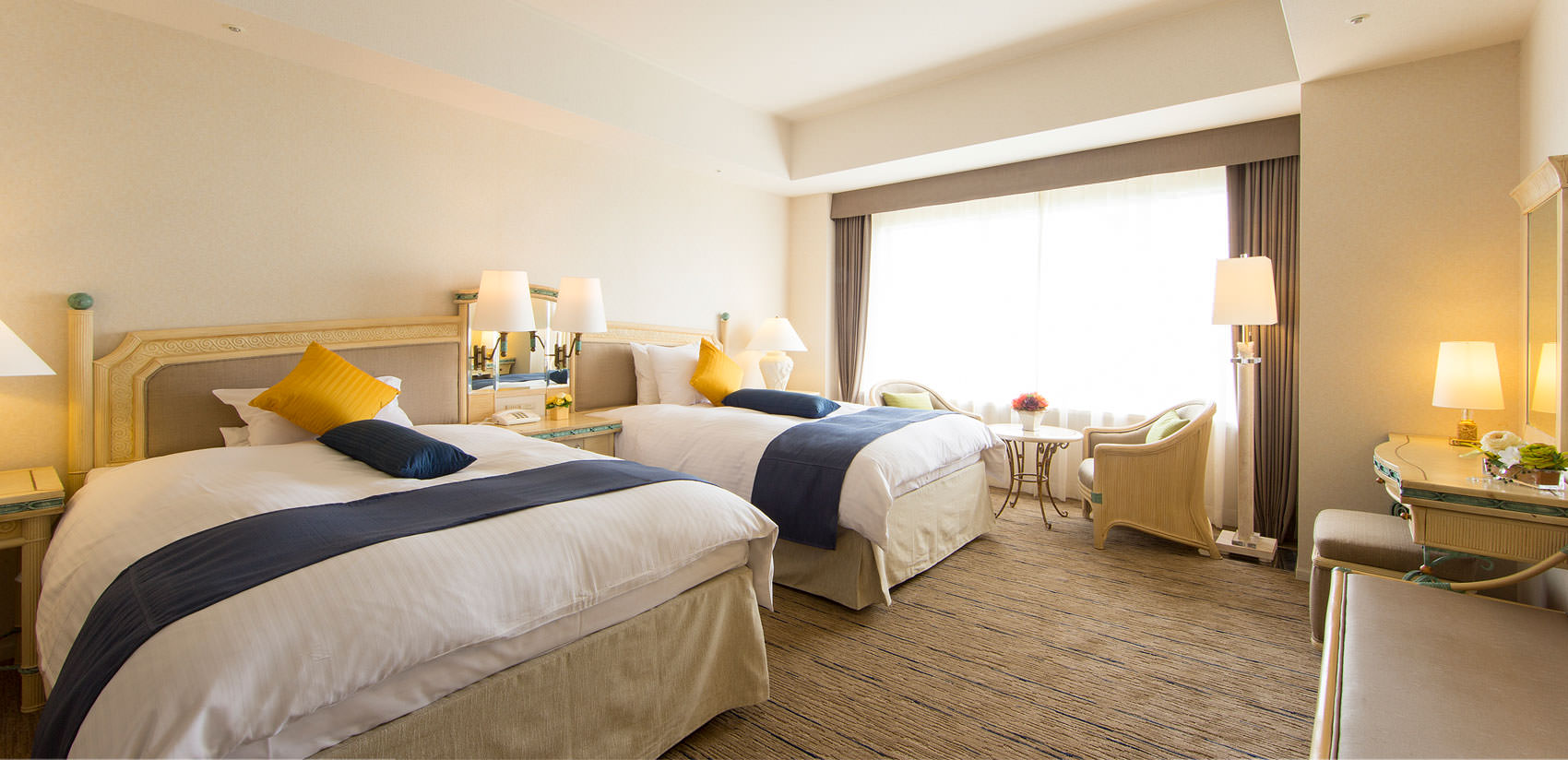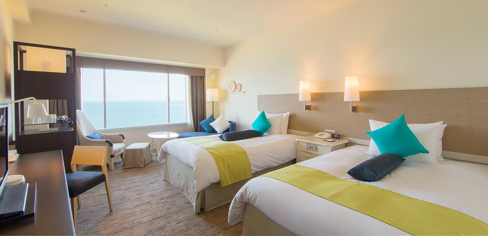 2013年のリブランド時にIHGのグローバルスタンダードに準じた改装を行い、ホテル最上階からのオーシャンビューが楽しめる、シックで落ち着きのある内装のワンランク上の客室になりました。