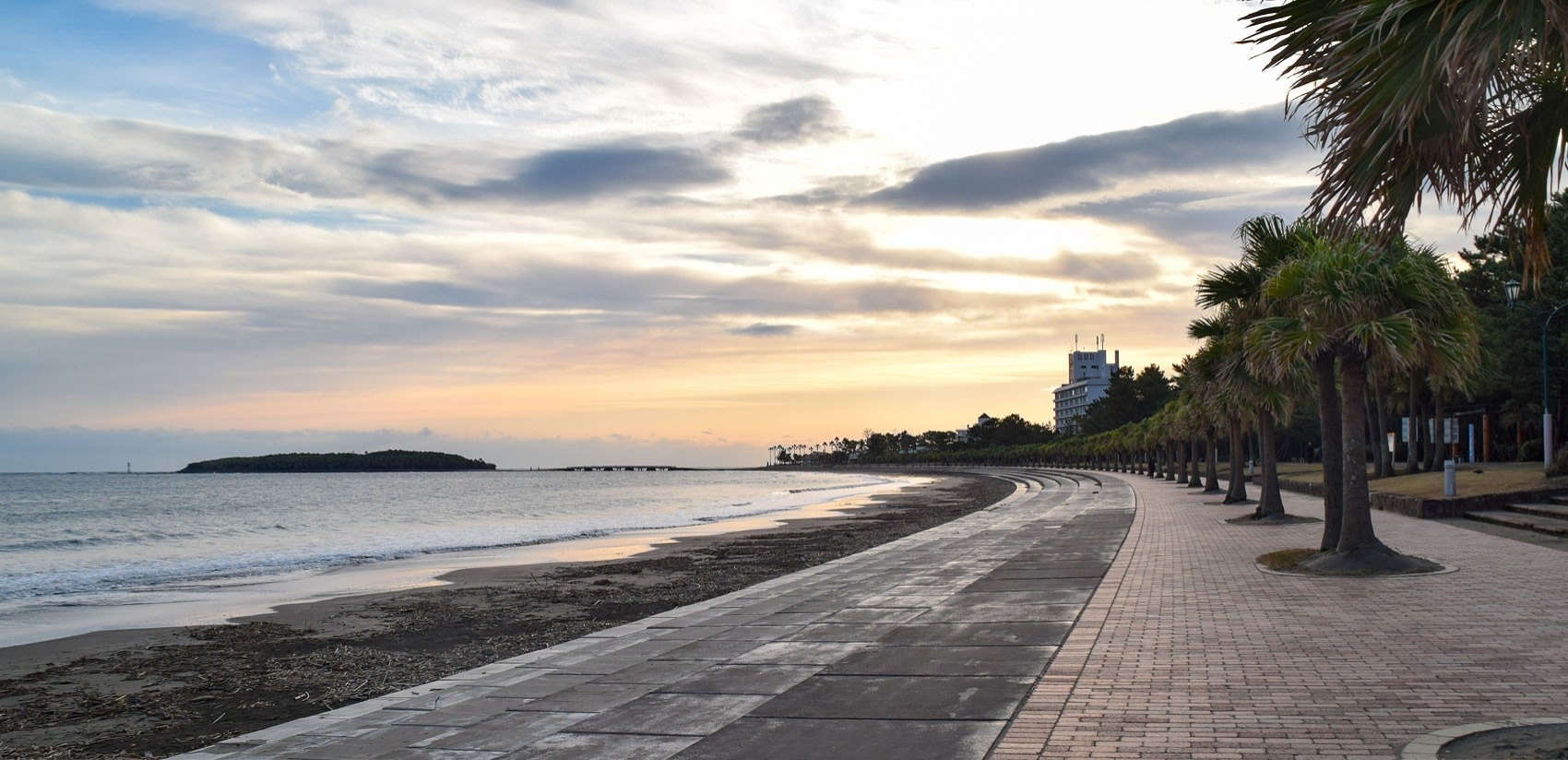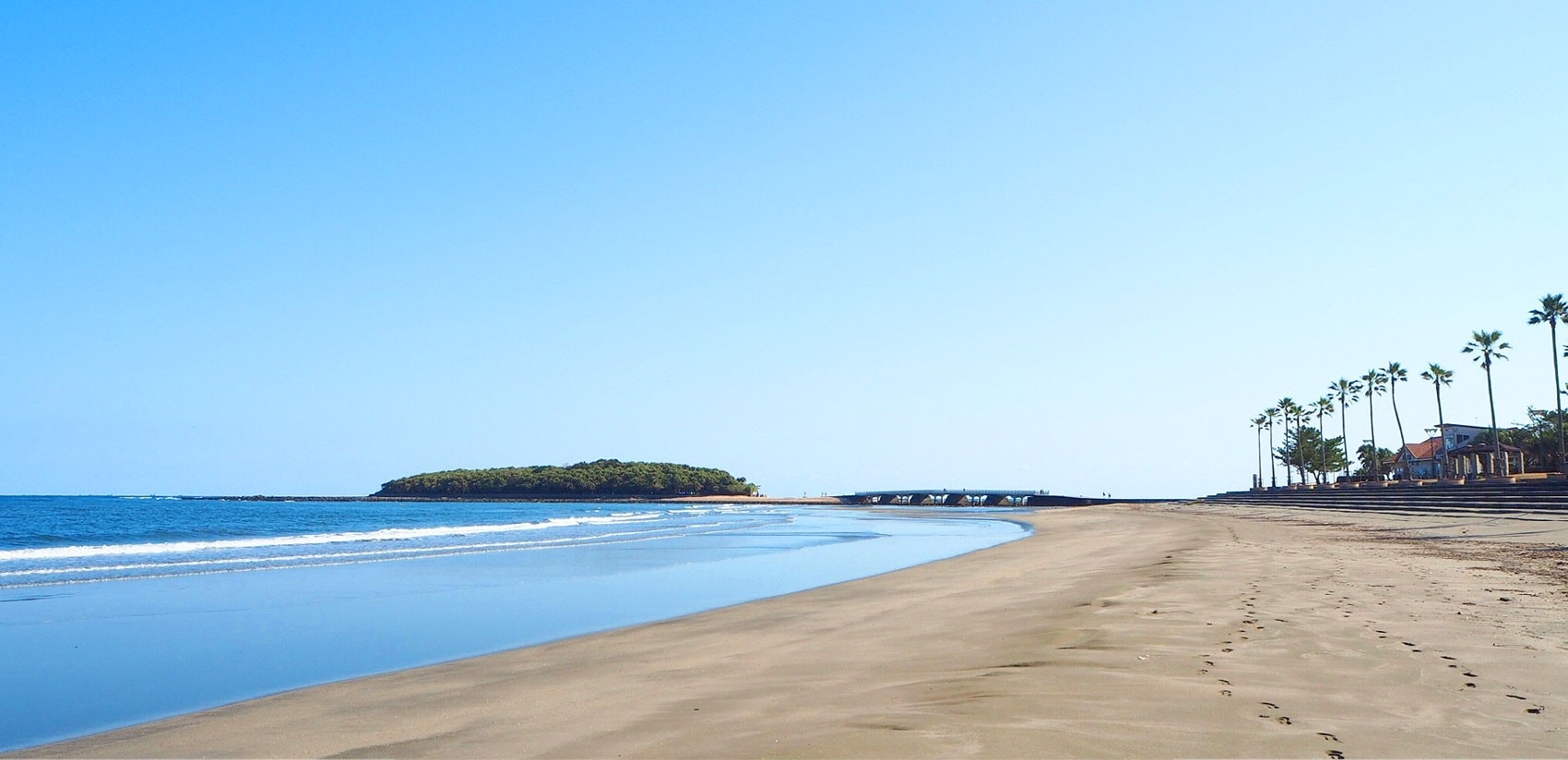 宮崎の観光名所の一つ。夏は海水浴で賑わい、サーファーの人気スポットでもあります。
