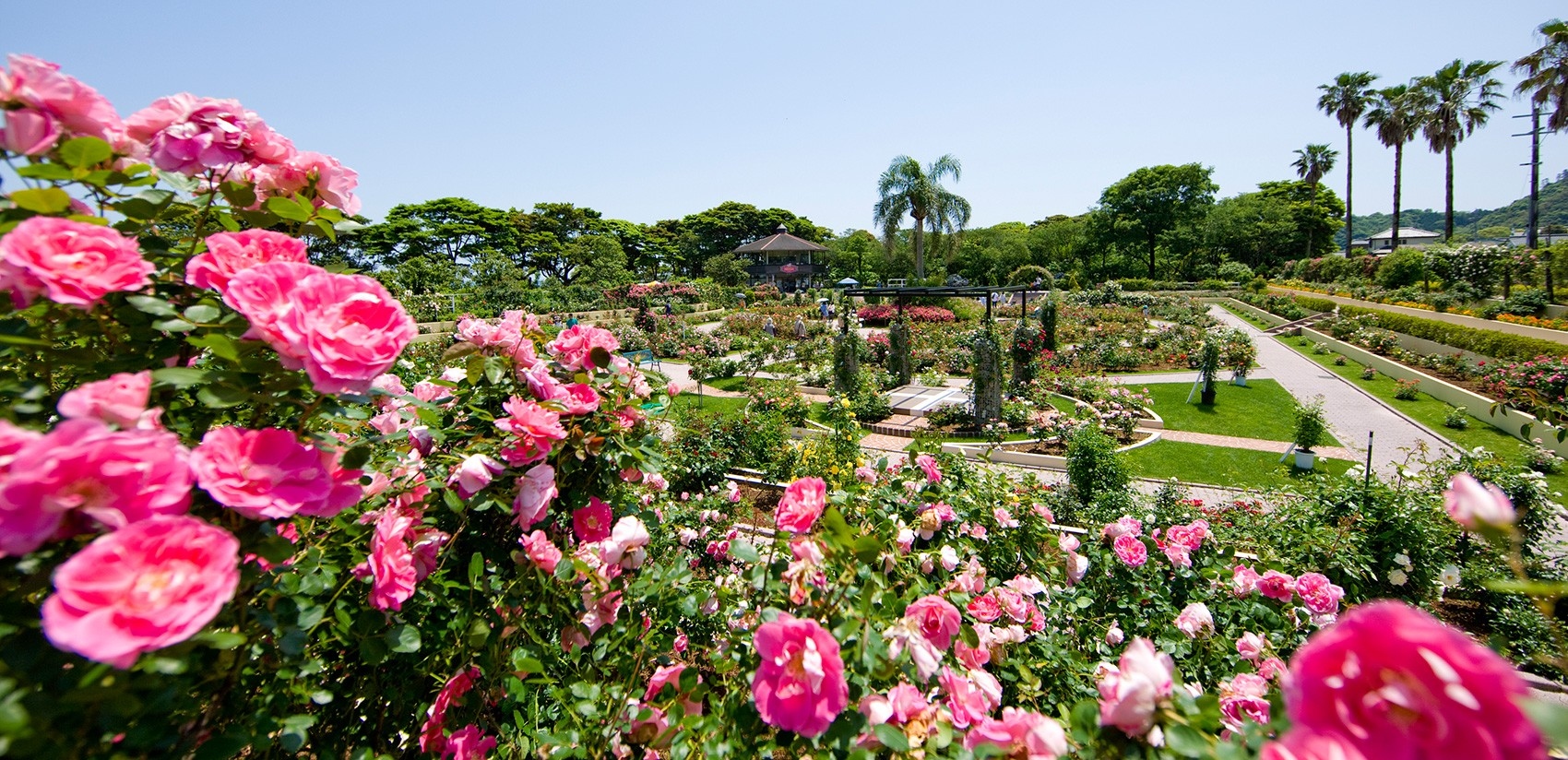 園内には、県木のフェニックス、ビロウ、女王ヤシ、アコウパラボラチョ、ジャカランダ等が植栽され、南国特有のランタナや各種のハイビスカスなどが四季を通じて咲いています。